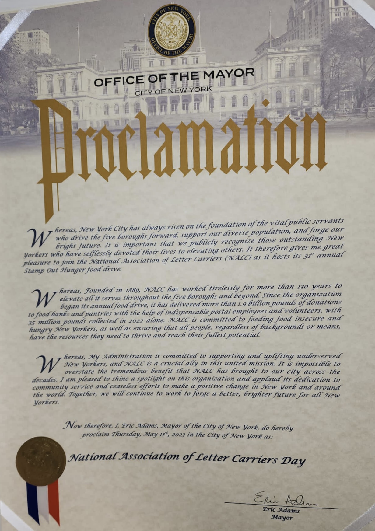 OUR LETTER CARRIERS AND POSTAL EMPLOYEES DELIVER FOR US NOW IT’S TIME FOR US TO DELIVER FOR THEM